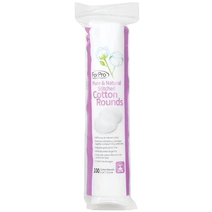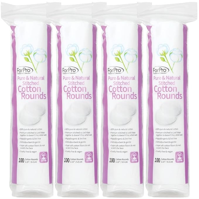 ForPro Pure & Natural Stitched Cotton Rounds for Face (400-Count), 100% Pure Cotton Makeup Remover Pads, Hypoallergenic, Lint-Free, Vegan & Cruelty-Free, Pack of 4-100 Cotton Pads