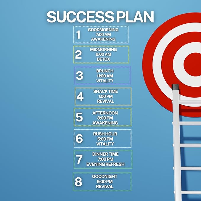 • 48-Hour Body Cleanse: Replace meals with 4 oz detox juice blend + 4 oz water, 8 times over 2 days. Enhance results with 8 extra glasses of water to support hydration and effective calorie management.
