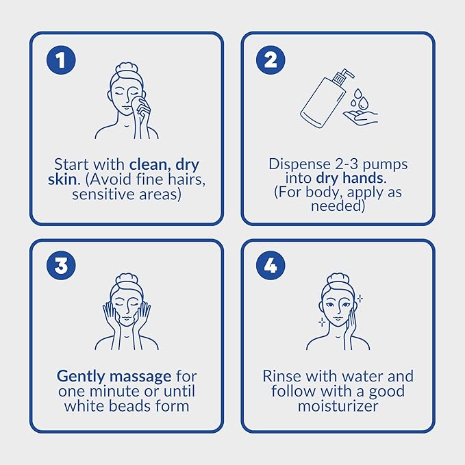 • + FACE & BODY + This exfoliating face and body wash is designed for the face and the body such as the neck, elbows, hands, and heels. Gently buff away dry skin and instantly polish and soften your skin.