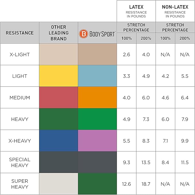 • VERSATILE. The Body Sport Exercise Bands are ideal for upper and lower body strength and resistance training at the clinic, at home, or on the go.
