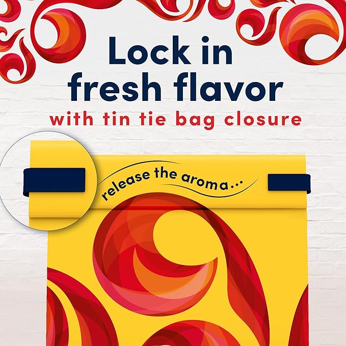 • Resealable bag of ground decaf coffee with fresh lock tin tie retains flavor and aroma