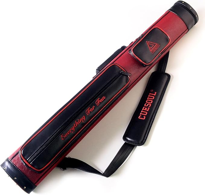 • The Red Cue Case Holds 2 butts and 2 shafts with Adjustable shoulder strap and handle on pool case,Interior length to fit up to 30" length butt or shaft.(2 Pockets to Hold the Billiards Chalk,Cue Clean Towel,Billiard Accessories)