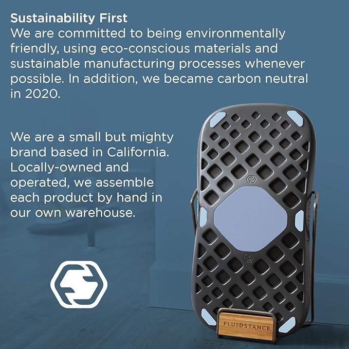 • MADE IN AMERICA: FluidStance is a small but mighty, locally owned and operated brand based in California, USA. From standing desk mats to balance trainers, we assemble each of our one-of-a-kind, premium work desk accessories by hand in our own warehouse.