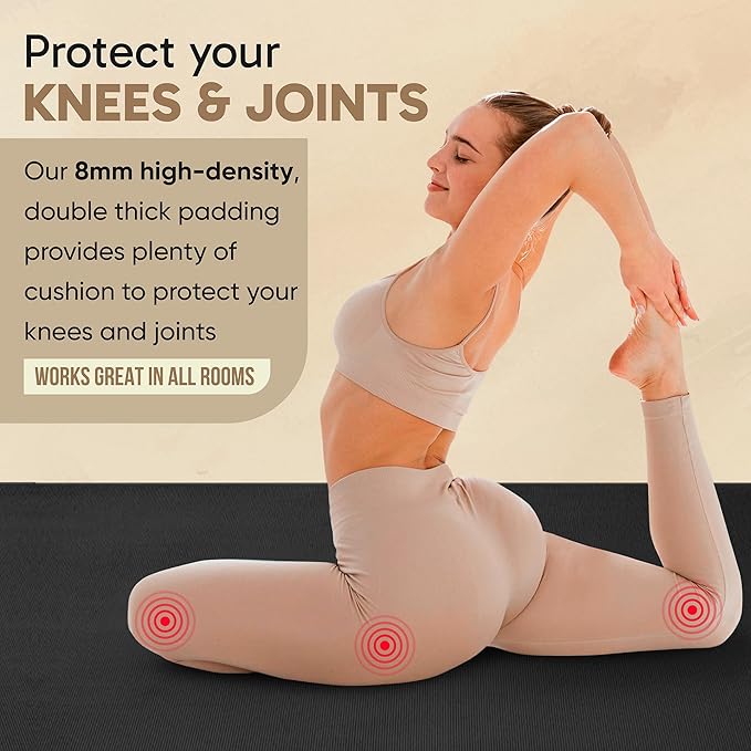 • Extra Thick & Ultra Comfortable – The perfect balance of squishy comfort and stable support. Our 8mm high-density, double thick padding provides plenty of cushion to protect your knees and joints – even on concrete, tile or hardwood floors. Works great in all rooms and flooring including living room carpet, garage or basement.