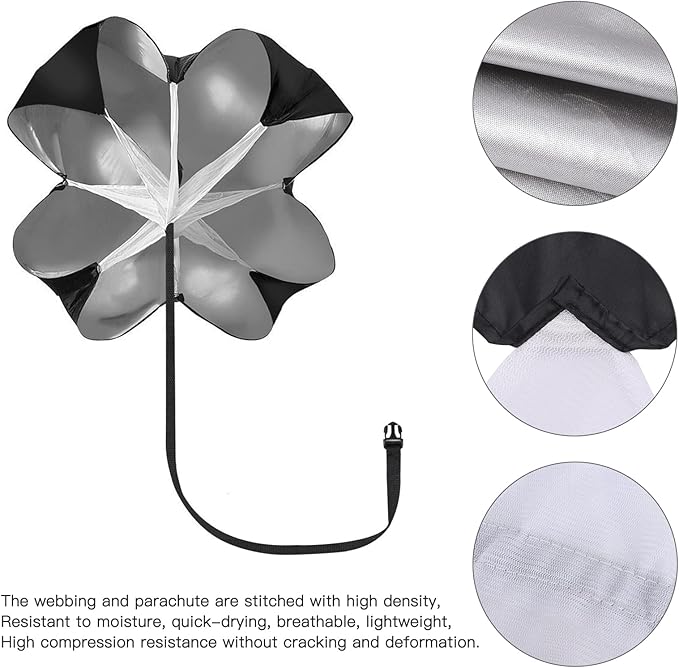 • POWERFUL RESISTANCE : 56" diameter 2 Umbrella 1 waist belt it can provide 25-50 lbs of resistance,Experiments show that the speed increases,your speed will improve with the use of this resistance training chute.
