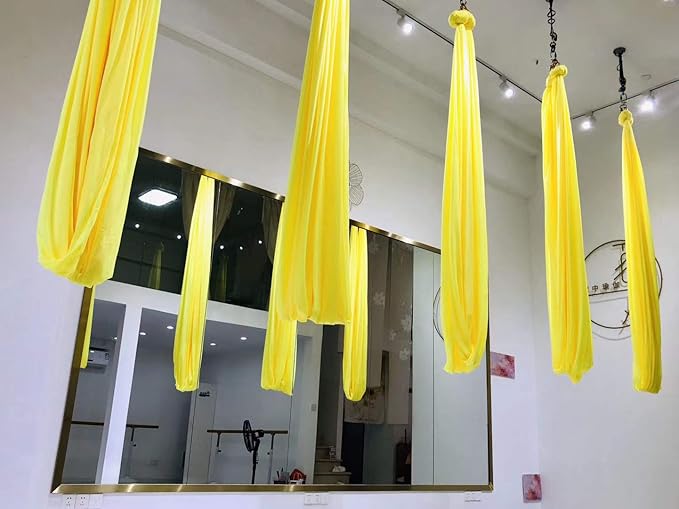 • There are many Aerial Yoga Hammocks on the market, but our Basic Aerial Yoga Hammock is made from Certified Quality Material And Hardware. 1 x 5.5 yards Elastic aerial hammock , 2 x Steel Screw-lock Carabiners (25KN), 2 x 3ft Nylon Reinforced Daisy Chains (23KN).Max rated for 2,059 pound dynamic load.