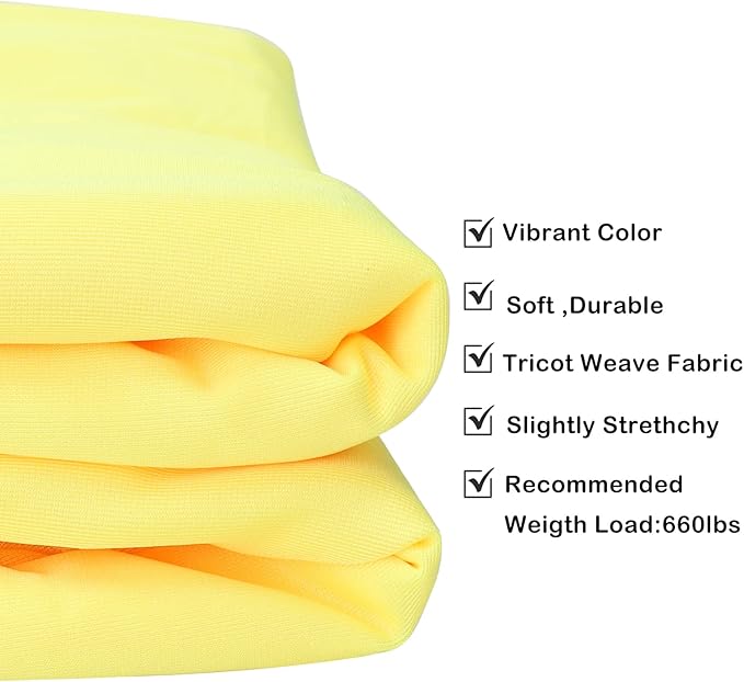 • HIGH QUALITY MATERIAL – It is long lasting, comfortable, and can be used by the whole family. The fabric is 100% Nylon Tricot fabric and between 102 to 108 inches wide. It is tightly woven, durable, soft, and easy to clean. It stretches on the width not length so it will form to your body for comfort while maintaining the strength necessary for sitting in the hammock.The fabric is rated for 2,057 pound dynamic load.