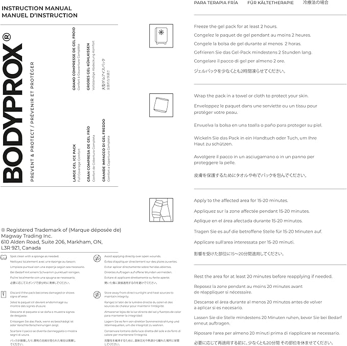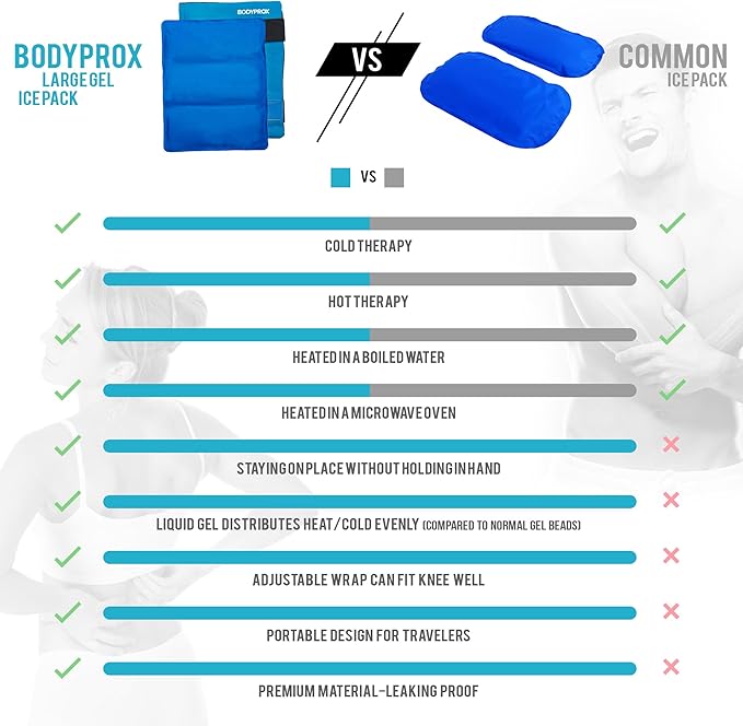 • Get heat and ice therapy in one convenient pack! Bodyprox Large Ice Pack is specifically designed to cover your largest muscle groups providing instant relief to overworked or injured muscles. Heat the pack for chronic pain or freeze it for sudden injury and swelling