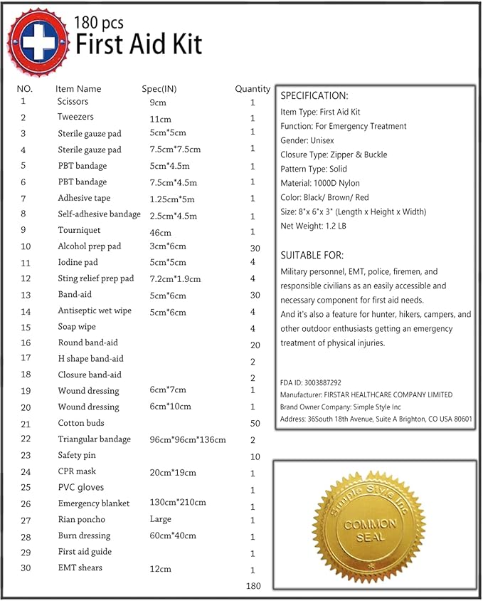 • ★INCLUDED: 180 piece essential medical supplies for backcountry expeditions. Be Desmond Thomas Doss saving your family and friends in an emergency.
