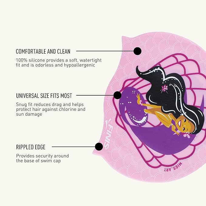 • Fun Kids Swim Cap: Underwater adventures await with the FINIS Mermaid Silicone Cap; turn heads with a fun and colorful design