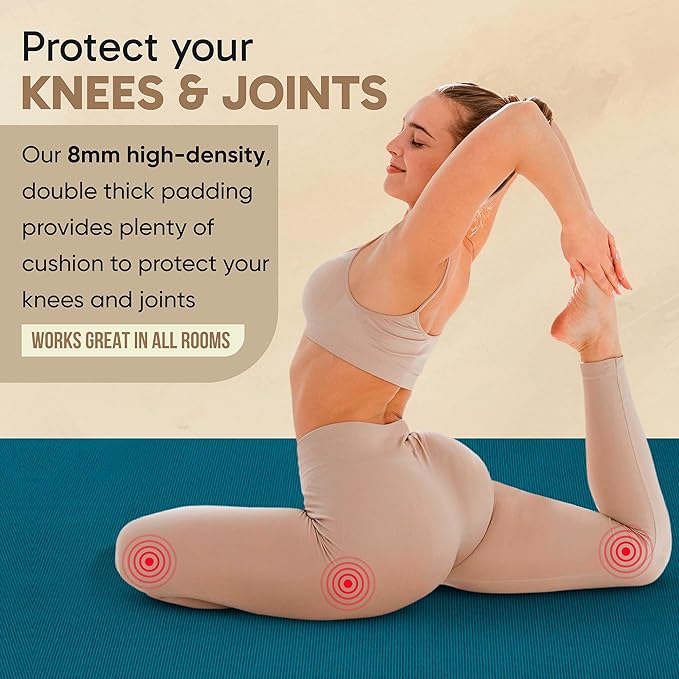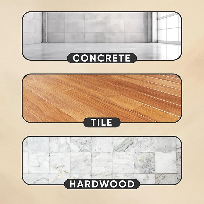 • Extra Thick & Ultra Comfortable – The perfect balance of squishy comfort and stable support. Our 8mm high-density, double thick padding provides plenty of cushion to protect your knees and joints – even on concrete, tile or hardwood floors. Works great in all rooms and flooring including living room carpet, garage or basement.