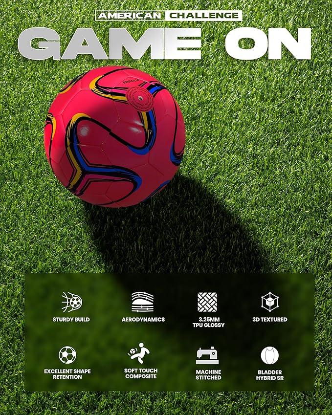 American Challenge Brasilia Soccer Ball – Soccer Ball Size 5, 4, 3 & 2 – for Youth & Adults – Ideal for Practice, Training & Grass Fields