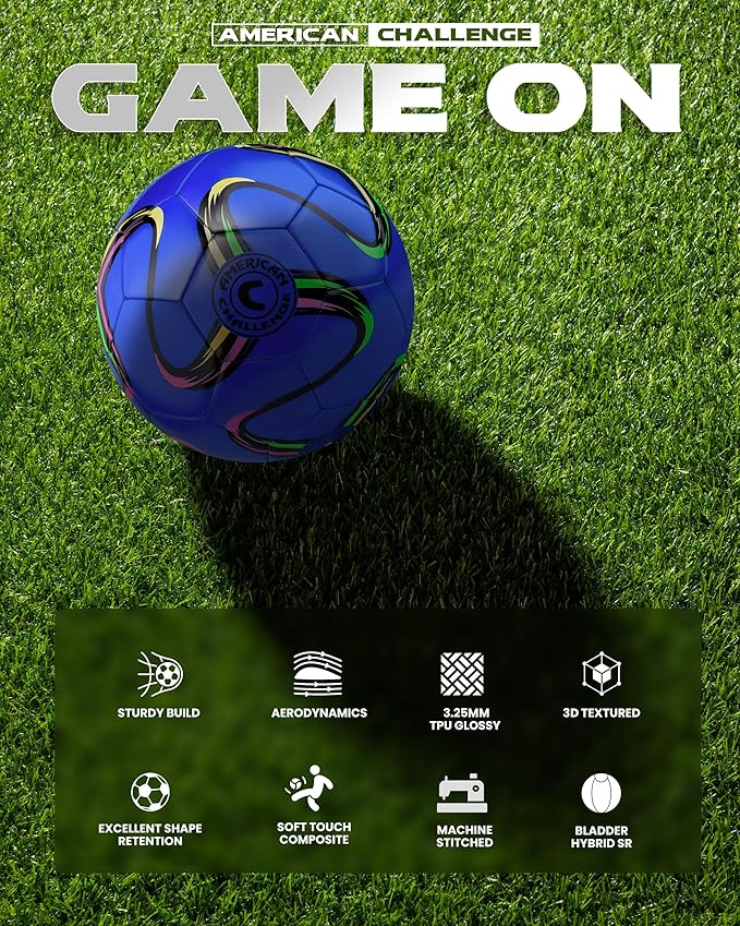 American Challenge Brasilia Soccer Ball – Soccer Ball Size 5, 4, 3 & 2 – for Youth & Adults – Ideal for Practice, Training & Grass Fields