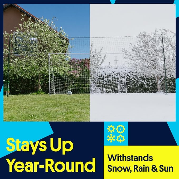 • Backyard-Friendly Design: Easy to set up with no digging required, poles spike into natural grass and anchor securely with guy ropes. Open Goaaal is only compatible with grass surfaces (not turf, sand, or concrete), be sure to check your setup before ordering. Built from high-quality, weather-resistant materials, this durable soccer goal is designed to withstand rain, snow, and wind. Protect your yard, your neighbors, and your windows, while giving kids the freedom to play hard