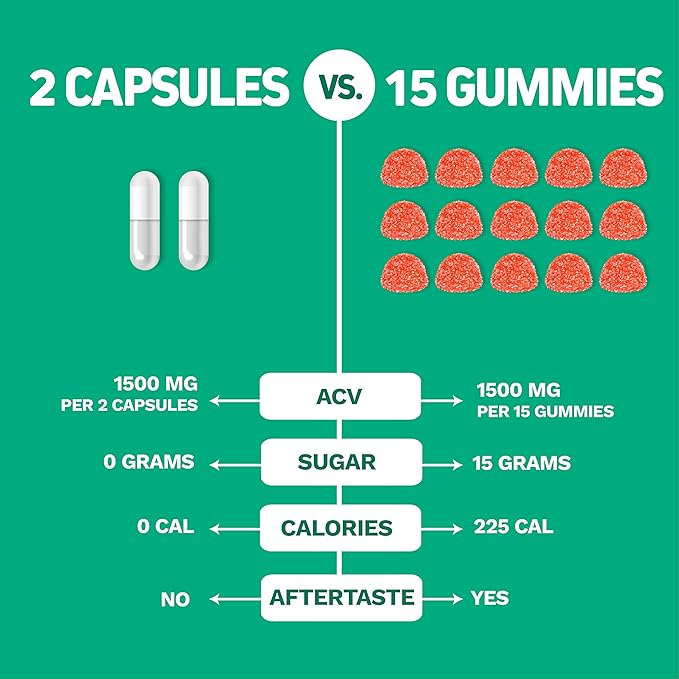 • NATURAL DETOX CLEANSE & DIGESTIVE HEALTH: Feel lighter and support gut wellness with our apple cider vinegar capsules. Formulated to aid natural detoxification processes, relieve occasional bloating, and promote healthy digestion without the harsh taste of liquid vinegar.
