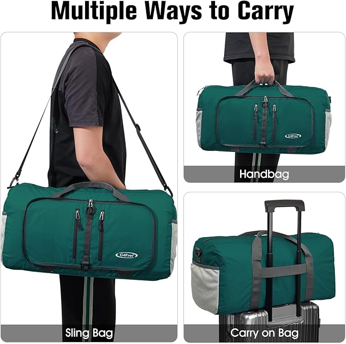 G4Free 40L/65L Foldable Duffel Bag, Water-Repellent Travel Backpack, Lightweight Carry Bag for Overnight Weekender Sports Men Women