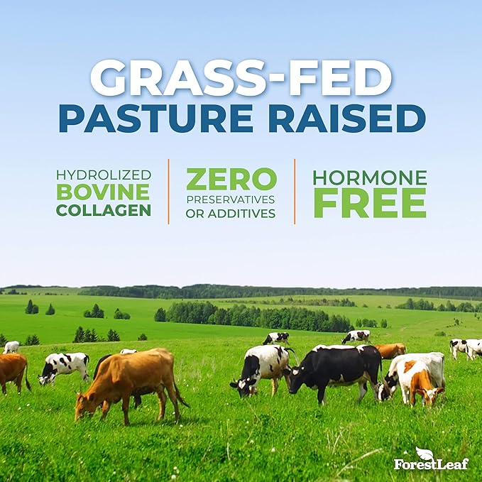 • Pasture Raised Grass Fed Collagen Powder - Forest Leaf advanced collagen is 100% grassfed collagen from naturally grazing, pasture raised livestock and is unflavored with zero artificial additives or flavors including sugar, gluten, dairy, nuts, soy, fish, egg, and hormones.