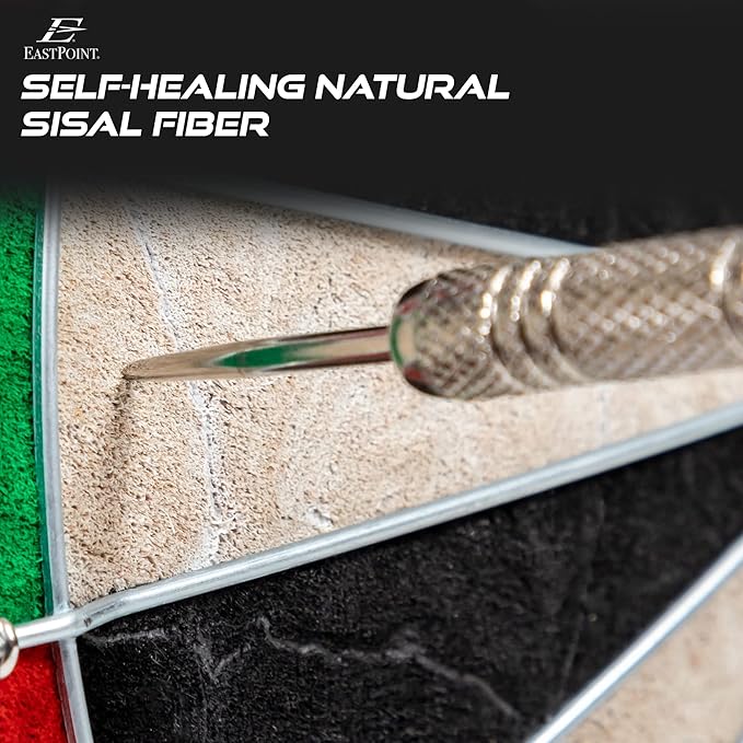 • SELF-HEALING SISAL FIBER - The Belmont dartboard is made of high-density, sisal fiber that naturally heals itself, ensuring long-lasting durability for shot after shot without visible holes. Complete with a heavy-duty steel spider frame for durability.