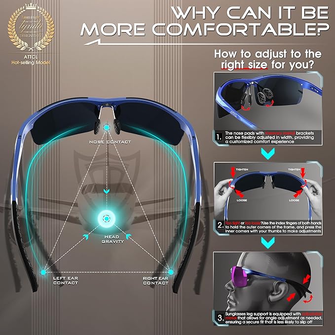 • PREMIUM GIFT PACKAGE: Each pair of ATTCL men’s sunglasses comes with zipper case, microfiber pouch, cleaning cloth, box, and polarization test card. Stylish men’s sunglasses polarized make perfect gifts for Father, Husband, Son, or Boyfriend. These versatile sunglasses men suit driving, fishing, and everyday adventures