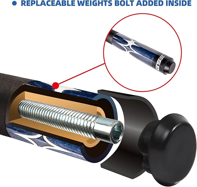• Quality: The pool cue has many layers of high gloss epoxy paint finish to prevent fading and warping, features a two-piece pool cue stick design for easy transport and storage