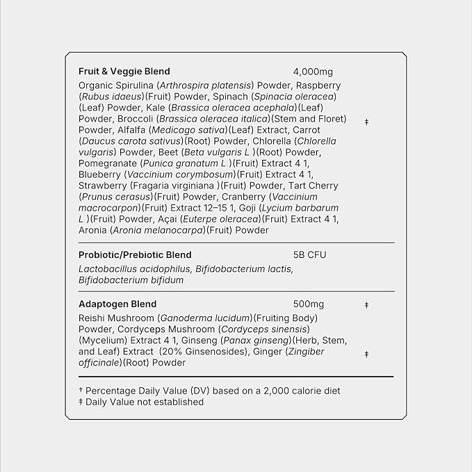 • TOTAL BODY SUPPORT: Power your performance for the long-haul with our daily protein and greens powder for women and men. The newest addition to your restoration kit, packed with essential nutrients your active lifestyle demands. Clean complete nutrition to fuel your foundation, packed with vitamins, minerals, antioxidants, superfoods, adaptogens, pre + probiotics, and amino acids.