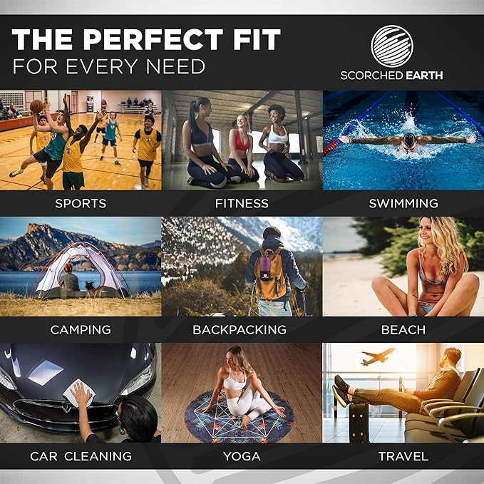 • ★ MULTIFUNTIONAL: The ScorchedEarth Microfiber Towel’s compact size combined with its ability to absorb far more water and dry much faster than an ordinary towel makes it perfect for almost any use! Whether you are going for a quick swim at the beach, traveling with limited space for a bath towel, attending hot yoga, hitting the gym, running a marathon, or setting up camp after a long hike, our towel is multifunctional, durable, and reusable, allowing it to get the job done over and over again.