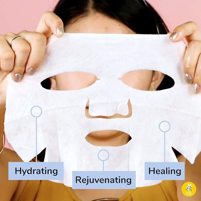 • 😌 RAYON MATERIAL that is silk-like, breathable and cool to the touch. This soft material is drenched in refreshing, hydrating essence and adheres to the skin perfectly. Leave sheet mask on for 10-15 minutes so your skin is ultra nourished!