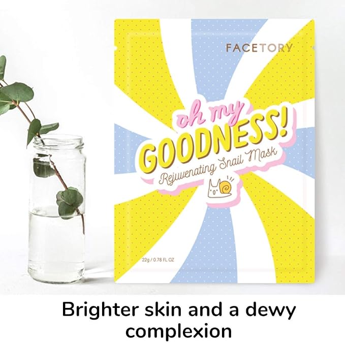 FACETORY K Beauty Face Mask Skin Care - OH MY GOODNESS REJUVENATING SNAIL Sheet Mask with Snail Essence & Hyaluronic Acid | Seal in Moisture (5 Pack)