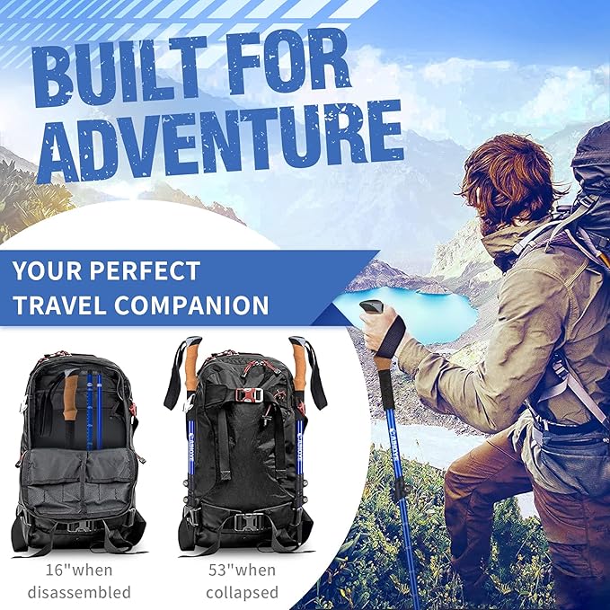 • Stronger Than Carbon Fiber - The Trekking Poles Are Made Of Lightweight But Sturdy Aircraft Grade 7075 Aluminum, Its Ability To Withstand Pressure And Impact Is Far Superior To Carbon Fiber Trekking Poles, This Is Essential For Hiking On Steep Or Rocky Terrain Or Load More Weight