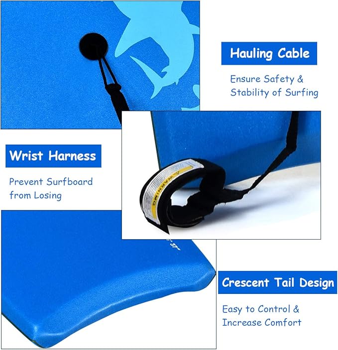 • 【Strong Buoyancy & Light Weight】Strong buoyancy and sturdy construction give our body board a strong load-bearing capacity. It is not easily deformed and faded and can be used for a long time. The light weight makes it easy to carry, so you can take it wherever you go.