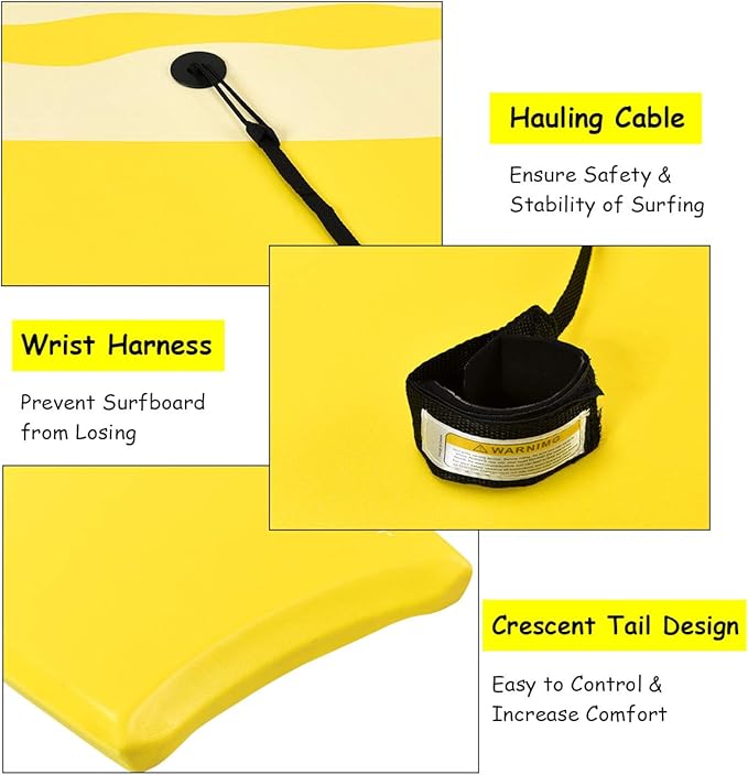 • 【Strong Buoyancy & Light Weight】Strong buoyancy and sturdy construction give our body board a strong load-bearing capacity. It is not easily deformed and faded and can be used for a long time. The light weight makes it easy to carry, so you can take it wherever you go.