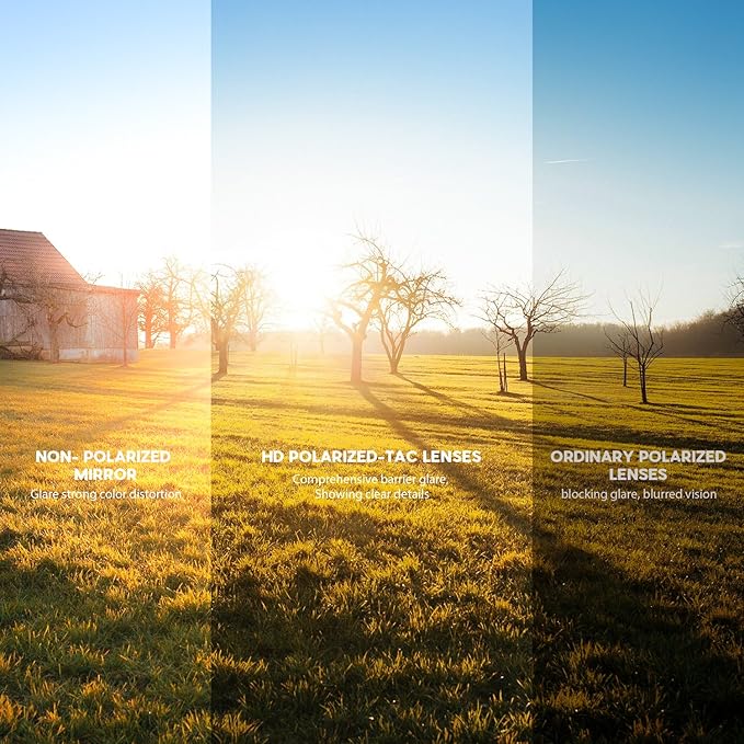 • HIGH-QUALITY TAC & PC MATERIAL: All Lens are made of high quality shatterproof TAC material that is robust enough for prolonged wearing. Lightweight PC frame design is ideal for motorcycle; cycling; bicycle; driving; running; fishing; racing; skiing; climbing; trekking or other outdoor activities, scratch resistant and unbreakable