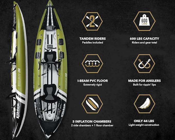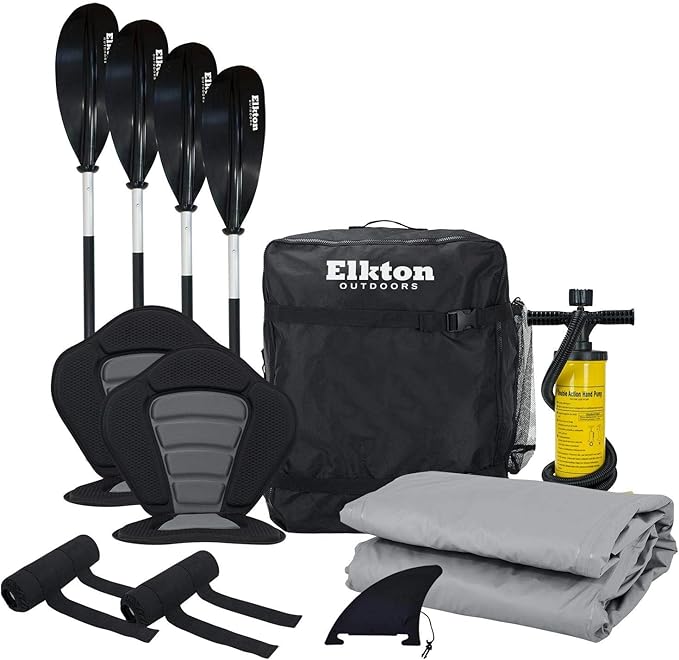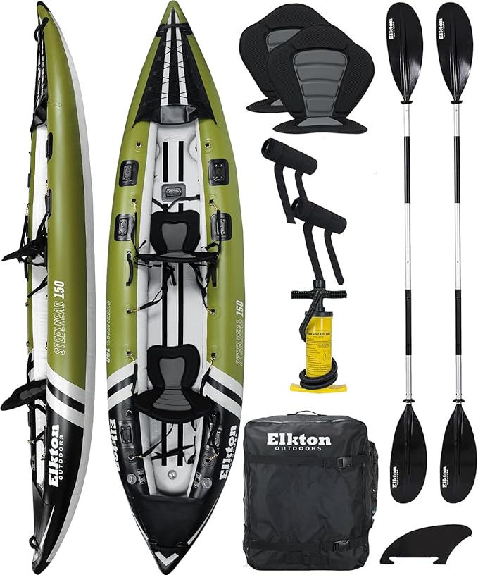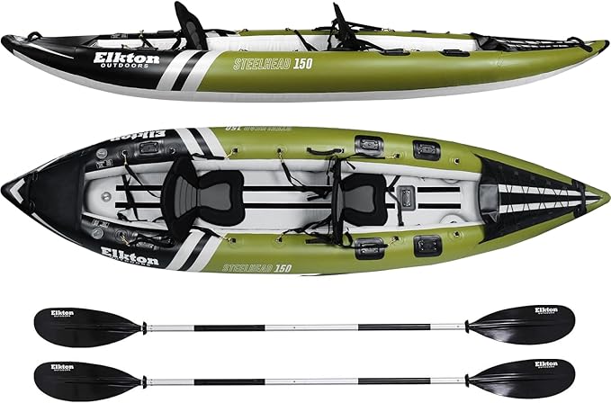• STAND UP CASTING - The Rigid Dropstitch Floor is an excellent fishing platform for both seated and standing casting. The floor also protects the rider and their vessel from underwater obstacles and functions as an excellent and platform to support kayak fishing accessories. Unlike other inflatable fishing kayaks for adults, The Elkton Outdoors Steelhead series will not rip or tear when encountering underwater obstacles.