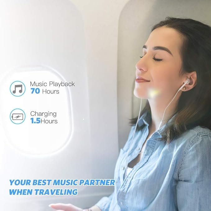 • ♫ ️[70 hours Battery Life]: Built-in Lithium polymer 420mAh battery. Up to 70 hours playback, fully charged within 1.5 hours by Type-C charging cable.