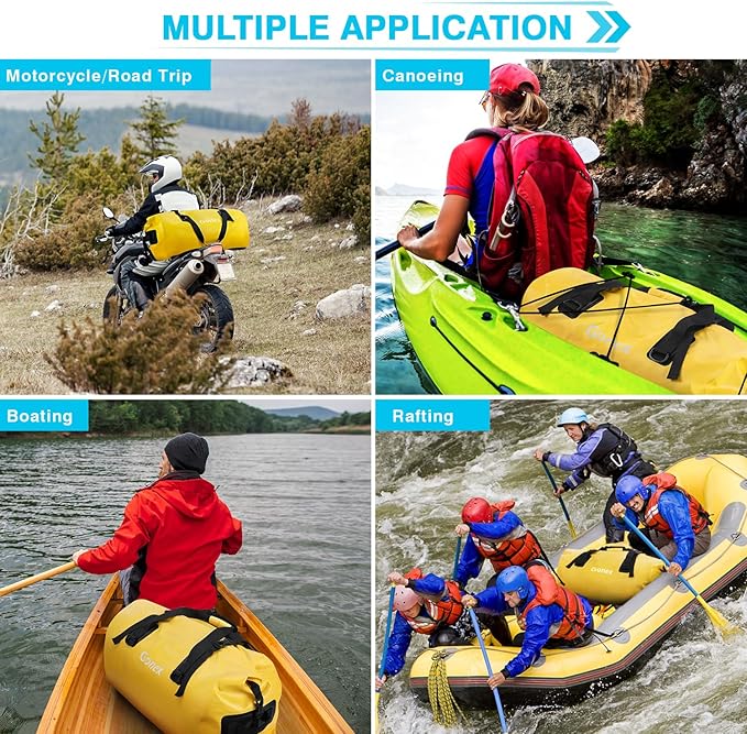 • Multiple uses: With its effective waterproofing, this waterproof dry bag is suitable for a wide range of outdoor activities, such as kayaking, paddleboarding, boating, motorcycle riding, rafting, fishing, diving, and other adventures