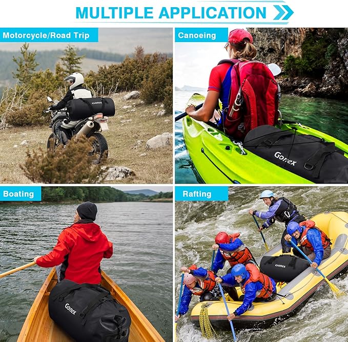 • Multiple uses: With its effective waterproofing, this waterproof dry bag is suitable for a wide range of outdoor activities, such as kayaking, paddleboarding, boating, motorcycle riding, rafting, fishing, diving, and other adventures