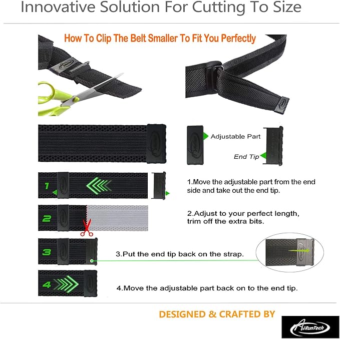 • ANTI-SLIP TECHNOLOGY FOR ULTIMATE FIT AND FRICTION-FREE COMFORT : AiRunTech Upgraded run belt hook&loop tape's in place nicely and doesn't loosen while running, give you the ultimate freedom of movement and comfort, personalized fit for hips from 18-51.2 inch (46cm-130cm), Designed to be worn low down on the hips, contoured grips ensure total comfort by removing friction, allows for a snug fit that stays in place without bouncing or chafing during use.