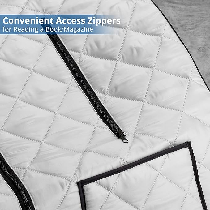 • 𝐂𝐎𝐍𝐕𝐄𝐍𝐈𝐄𝐍𝐓 𝐃𝐔𝐀𝐋 𝐀𝐂𝐂𝐄𝐒𝐒: Two front zippered hand openings allow you to read, use a device, or reach the dual storage pockets without leaving your sauna session.