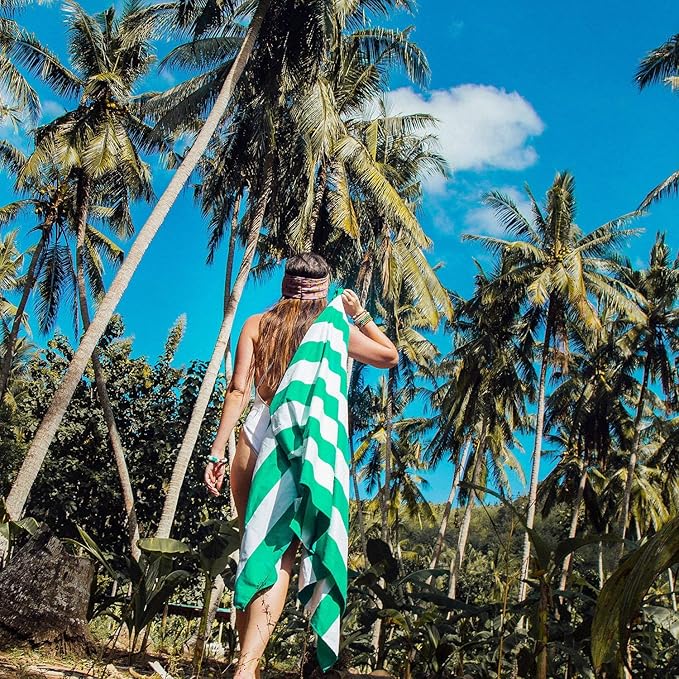 Dock & Bay Beach Towel - Quick Dry, Sand Free - Compact, Lightweight - 100% Recycled - Includes Bag - Cabana - Cancun Green - Extra Large (200x90cm, 78x35)