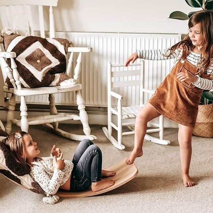 • 🌱 BOTH FOR KIDS AND ADULTS: The board is a wooden toy that grows with the child and is also very suitable for adults. To get fit, stretch your back (as a seat aid) in yoga exercises, to train balance or just because it's fun. It's possible to do a wide range of exercises on the wooden board.