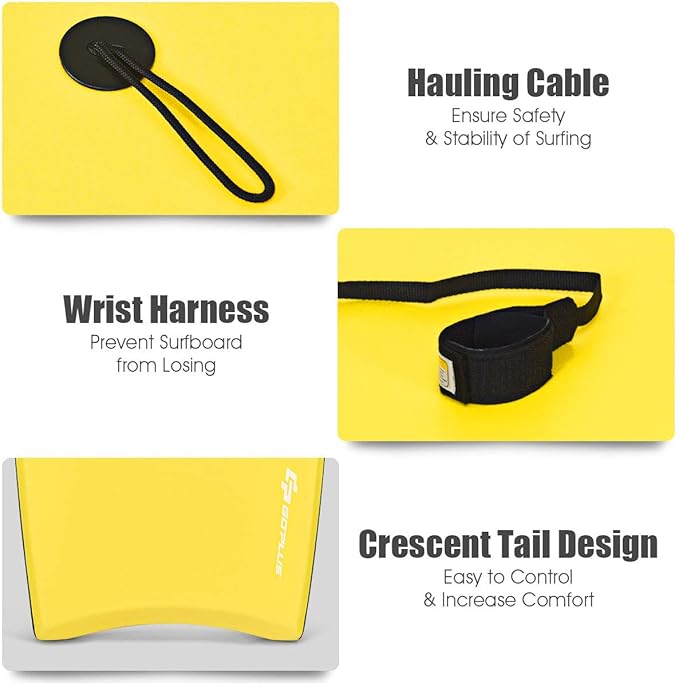 • 【Strong Buoyancy & Light Weight】Strong buoyancy and sturdy construction give our body board a strong load-bearing capacity. It is not easily deformed and faded and can be used for a long time. The light weight makes it easy to carry, so you can take it wherever you go.