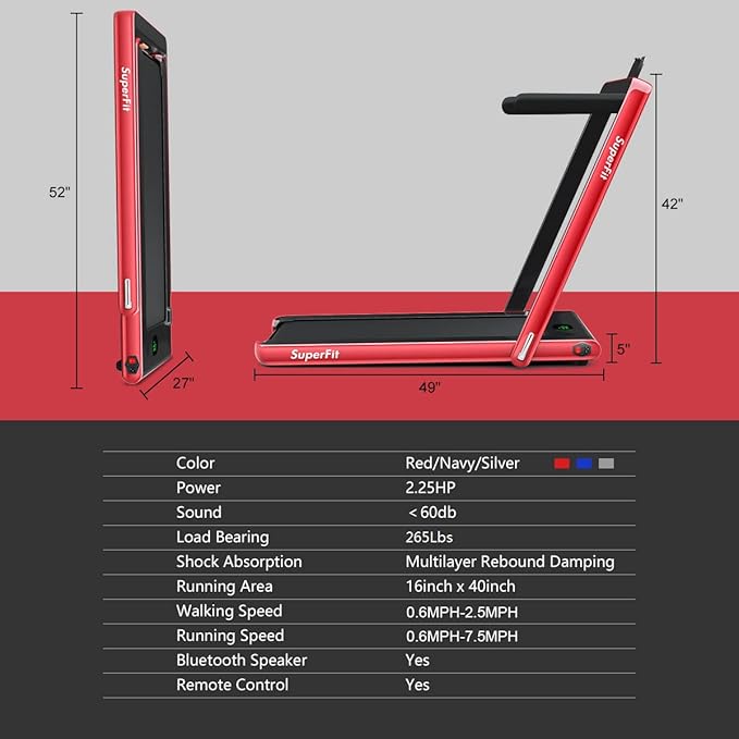 • 【2.25HP Quiet Motor & Shock-absorbing Design】With a powerful 2.25HP motor on the base, this premium treadmill will provide you with high intensity and silent exercise. The 5-layer shock-absorbing running belt provides an effective cushion for your joints and muscles.
