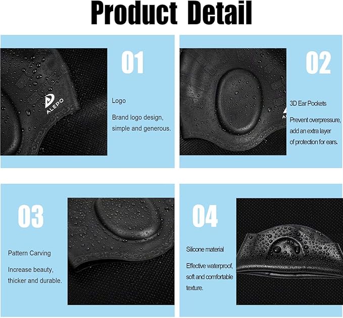 • Premium & Thicker Silicone Material: Alepo swim cap is made from high-quality eco-friendly silicone material, which features durable, tear-resistant and anti-aging. Great elasticity makes it stretch easily, no deformation after repeated use. The silicone material is also odorless, non-toxic, skin-friendly, so our premium swim cap is safe to use!