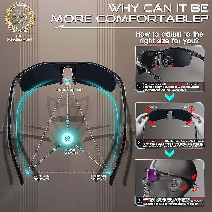 • PREMIUM GIFT PACKAGE: Each pair of ATTCL men’s sunglasses comes with zipper case, microfiber pouch, cleaning cloth, box, and polarization test card. Stylish men’s sunglasses polarized make perfect gifts for Father, Husband, Son, or Boyfriend. These versatile sunglasses men suit driving, fishing, and everyday adventures