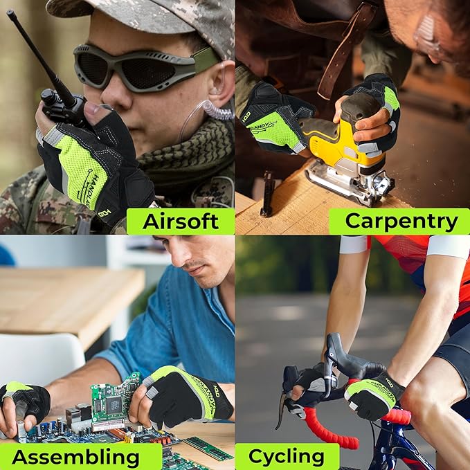 HANDLANDY Framer Work Gloves Open-Finger Carpenters Gloves, Fingerless Gaming Gloves for Tactical Shooting, Airsoft, Hunting, Police Work and Hiking M