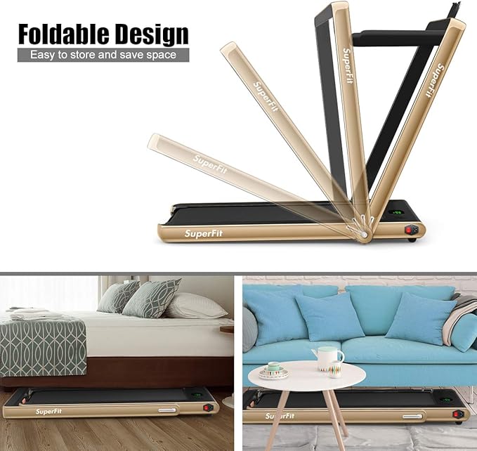 • 【Easy to Install, Move or Store】Installation-free design saves you time and energy. The wheels on the front of the treadmill can facilitate you to move it around. And you can fold it into a compact size to store it under your bed or sofa. And the treadmill has passed CE, ROHS, CB, EN957, IEC certifications by SGS. Please do not use the treadmill on carpet to avoid overheating