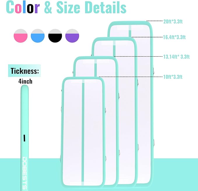 DOBESTS Inflatable Air Gymnastics Mat Tumbling Mat Tumble Track Gymnastics Training for Kids Home 6.6 feet 10 feet 13feet 16feet 20feet 4/8inch Thick for Cheerleading Dance Yoga Cheer Water With Pump