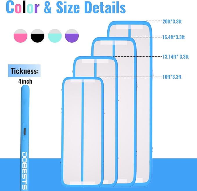 DOBESTS Inflatable Air Gymnastics Mat Tumbling Mat Tumble Track Gymnastics Training for Kids Home 6.6 feet 10 feet 13feet 16feet 20feet 4/8inch Thick for Cheerleading Dance Yoga Cheer Water With Pump