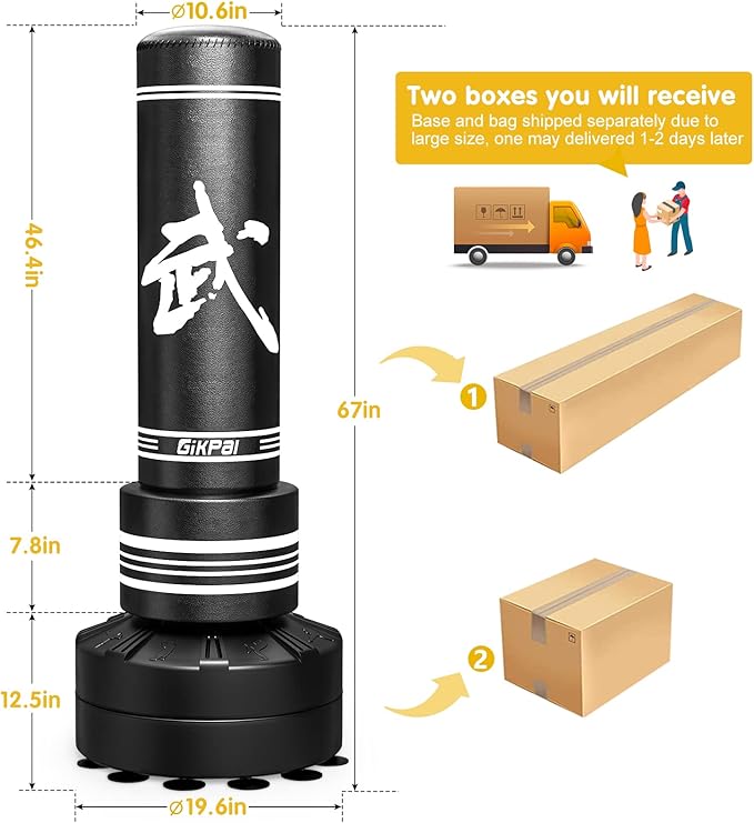 • [SHIPMENT NOTE] Base and bag shipped separately due to large size, so you will receive 2 parcels. The 2 hand wraps/boxing gloves are in the base parcel, please mind. If you just receive one parcel, please let us know.