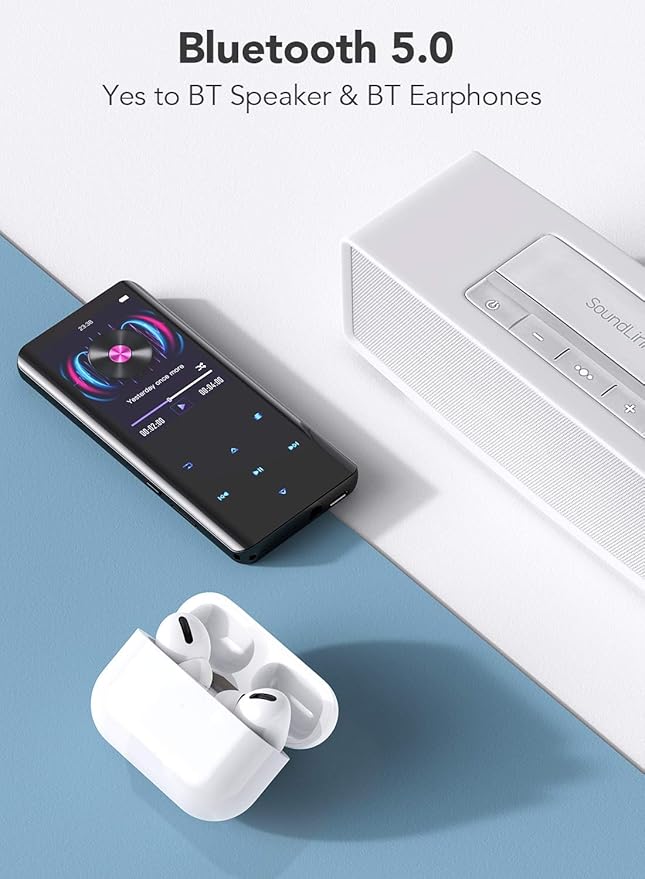 • 【Lossless Sound Quality】With a professional digital noise reduction chip, AGPTEK Bluetooth MP3 player can reduce noises to give you the most original sound quality and ensure a high-quality audio experience.Supports the music format like MP3 WMA APE FLAC WAV AAC-LC ACELP and so on.【Note It does not directly support Audiobook and iTunes.】